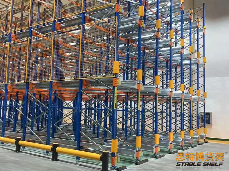 穿梭式貨架是一種高效、高密度、低成本的存儲(chǔ)方式,與貫通貨架相比,存儲(chǔ)能力相當(dāng),但安全可靠,貨架不容易損壞