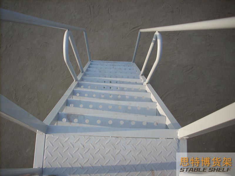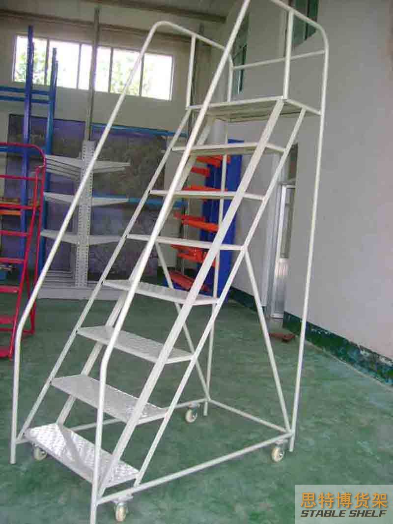 登高梯帶有定向腳輪和萬(wàn)向腳輪,可以自由移動(dòng),方便取貨和運(yùn)貨…