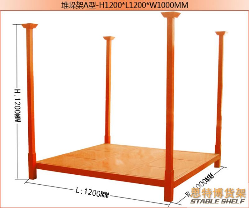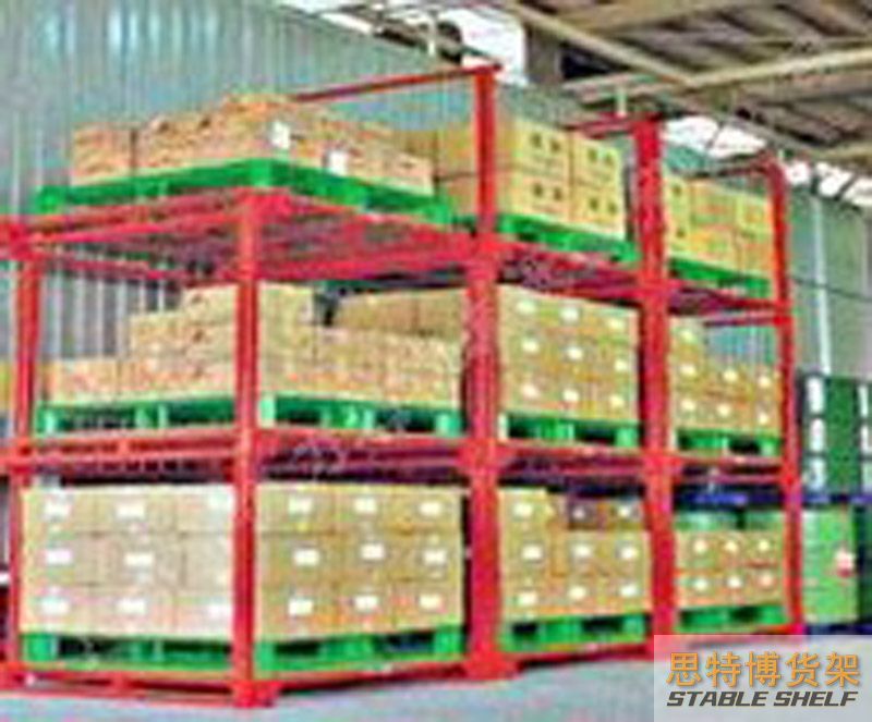 堆垛架,可相互堆3到4層,形成立體存儲(chǔ)模式,無需借助貨架、倉儲(chǔ)籠和托盤等設(shè)備,適合用在租賃倉庫、低矮的老式倉庫或車間暫存區(qū)等不適合投資貨架的區(qū)域。