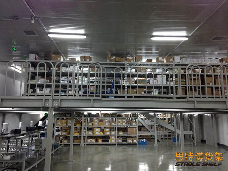 閣樓貨架系統(tǒng),通常利用中型擱板式貨架或重型擱板式貨架作為主體支撐加上樓面板(根據(jù)貨架單元的總負載重量來決定使用何種貨架),樓面板通常使用冷軋型鋼樓板、花紋鋼樓板或鋼格柵樓板。