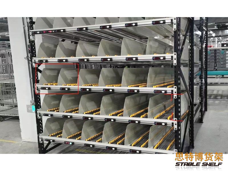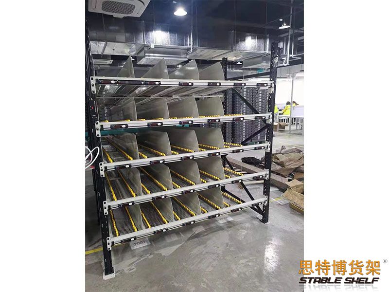 流利式貨架又稱滑移式貨架,采用輥輪鋁合金,鈑金等流利條,利用貨物臺(tái)架的自重,從一邊通道存貨,另一邊通道取貨實(shí)現(xiàn)先進(jìn)先出,存儲(chǔ)方便,以及一次補(bǔ)貨多次取貨。流利架存儲(chǔ)效率高,適合大量貨物的短期存放和揀選。可配電子標(biāo)簽,實(shí)現(xiàn)貨物的輕松管理,常用滑動(dòng)容器有周轉(zhuǎn)箱,零件盒及紙箱,適合大量貨物和短期存放和揀選。廣泛應(yīng)用于配送中心、裝配車間以及出貨頻率較高的倉庫。