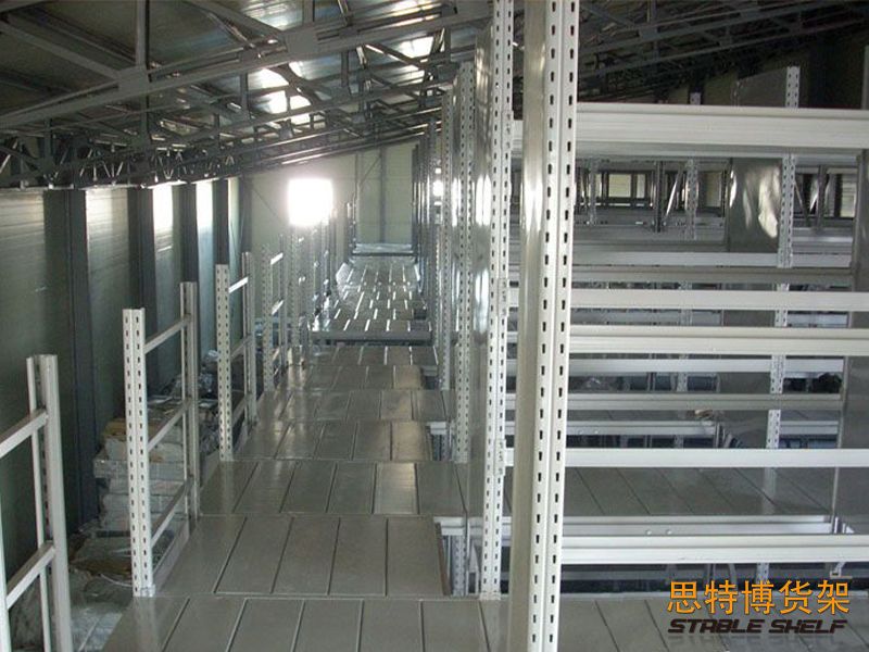 Mezzanine racking systems usually use medium-sized shelves or heavy-duty shelves as the main support plus floor panels (the type of shelf used is determined based on the total load weight of the shelf unit). The floor panels usually use cold-rolled steel floor slabs and patterned steel floor slabs. or steel grating floor slabs.