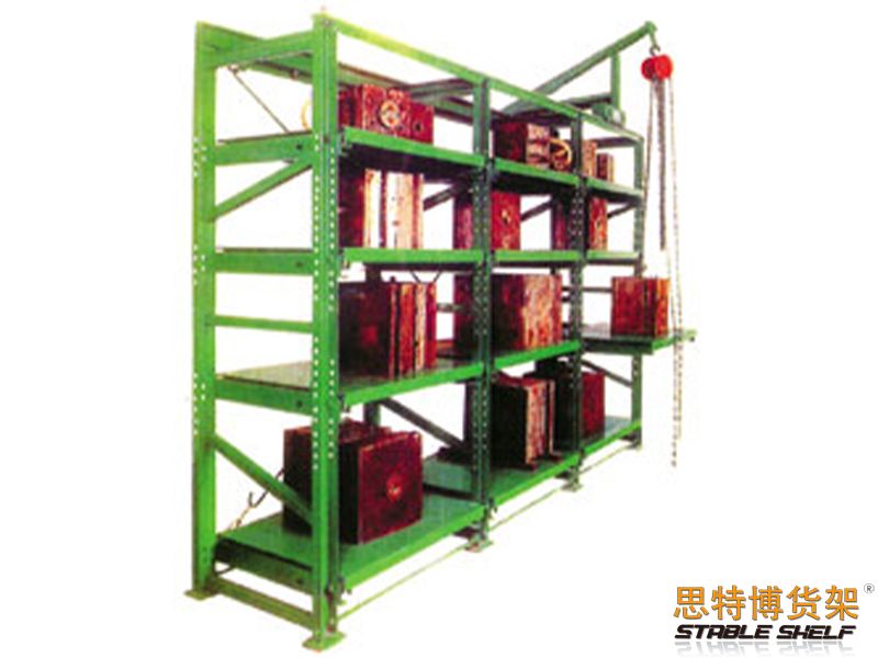 模具貨架是貨架的一種,簡(jiǎn)稱:模具架,主要存放各種模具物品,根據(jù)層載能力要求分為輕型模具貨架和重型模具貨架。模具架主要用于放置各類塑膠模具、五金模具、壓鑄模具、粉末冶金模具、擠壓模具。貨架頂部可配置移動(dòng)葫蘆車,以方便模具的起吊。模具貨架又稱模具架或抽屜式貨架,主要存放各種模具物品,貨架頂部可配置移動(dòng)葫蘆車,以方便模具的起吊。安全可靠附加保險(xiǎn)裝置;操作輕便采用軸承組合,滑動(dòng)平衡并附獨(dú)立吊模裝置;節(jié)省場(chǎng)地,占地面積積為1.8平方米,可存放幾十套中小型模具;結(jié)構(gòu)簡(jiǎn)單,由多種組合部件組裝而成,便于拆卸、運(yùn)輸和組裝;抽屜式模具架每格每層承重800-1000KG;節(jié)省空間,每格可放多套模具,方便模具保養(yǎng)管理和尋找;模架抽板承載后輕松抽送,上下間隔隨意調(diào)整,協(xié)同備有的滑車和手動(dòng)葫蘆可輕松、快捷的完成存取工作;模架采取可拆移式結(jié)構(gòu),全部配件可任意組合,上下間隔,拆裝簡(jiǎn)便。