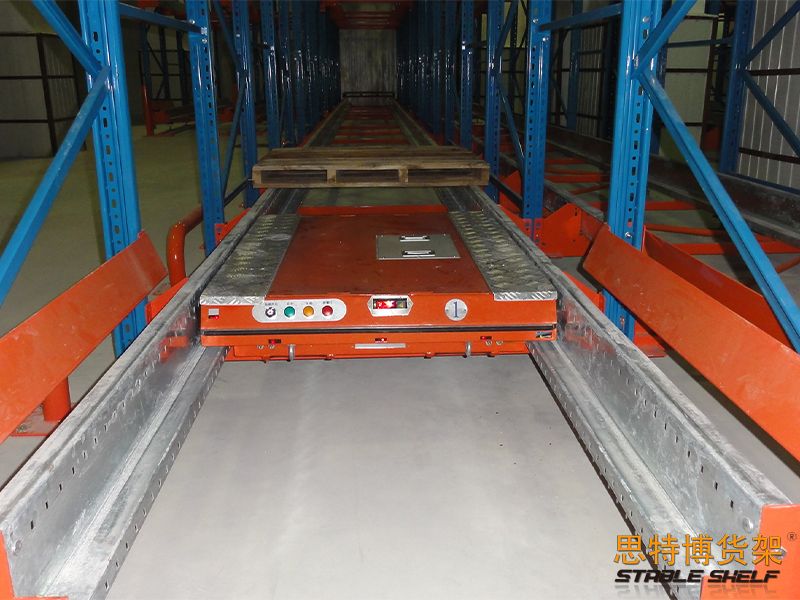 Shuttle shelf is an efficient, high-density, low-cost storage method, compared with through the shelf, the storage capacity is comparable, but safe and reliable, the shelf is not easy to damage; This kind of shelf needs to be compatible with the shuttle car, driven by a rechargeable battery, the shuttle car travels on the track and enters a specially designed shelf tunnel, using lifting plates and positioning sensors, each cargo will be transported to the farthest storage location in the tunnel. Access to goods can be easily operated by the forklift via remote control.