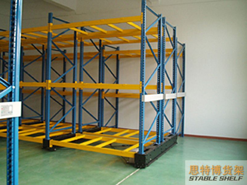 其突出的優(yōu)點是提高了空間利用率,一組貨架只需一條通道,而固定型托盤貨架的一條通道,只服務(wù)于通道內(nèi)兩側(cè)的兩排貨架。所以在相同的空間內(nèi),移動式貨架的儲存能力比一般固定式貨架高得多。