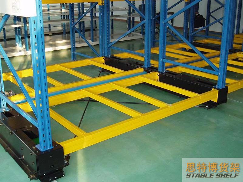 移動式貨架易控制,安全可靠。每排貨架有一個電機驅(qū)動,由裝置于貨架下的滾輪沿鋪設(shè)于地面上的軌道移動。