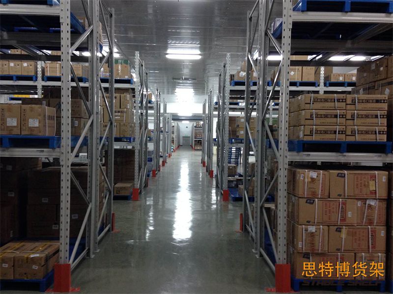 重型貨架是最常用的一種貨架,它具有良好的提取效率。固定架的儲存密度低,儲存的物品較重,必須配合托盤和叉車使用,所以又稱托盤貨架。在使用重型貨架時,必須考慮托盤和貨物的尺寸、重量和堆疊層數,以確定合適的支柱和橫梁尺寸。此外,為提高空間利用率,可減小通道寬度,采用專用堆垛機的軌道形式,即窄車道式貨架,將存儲空間垂直放置。