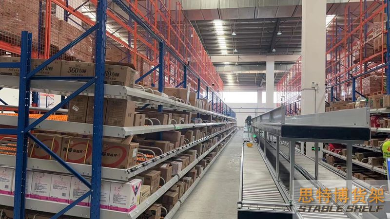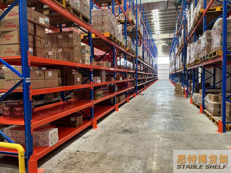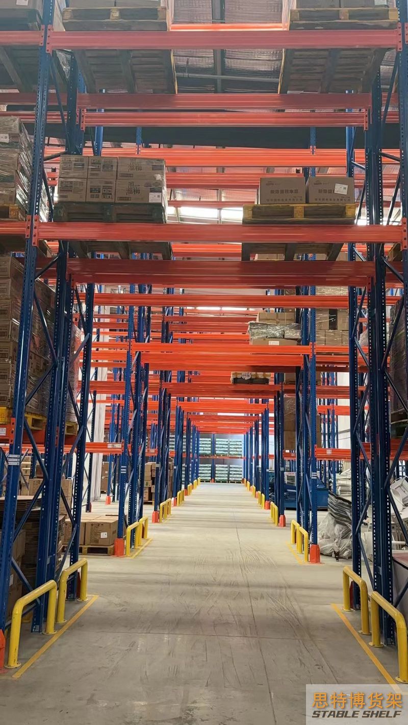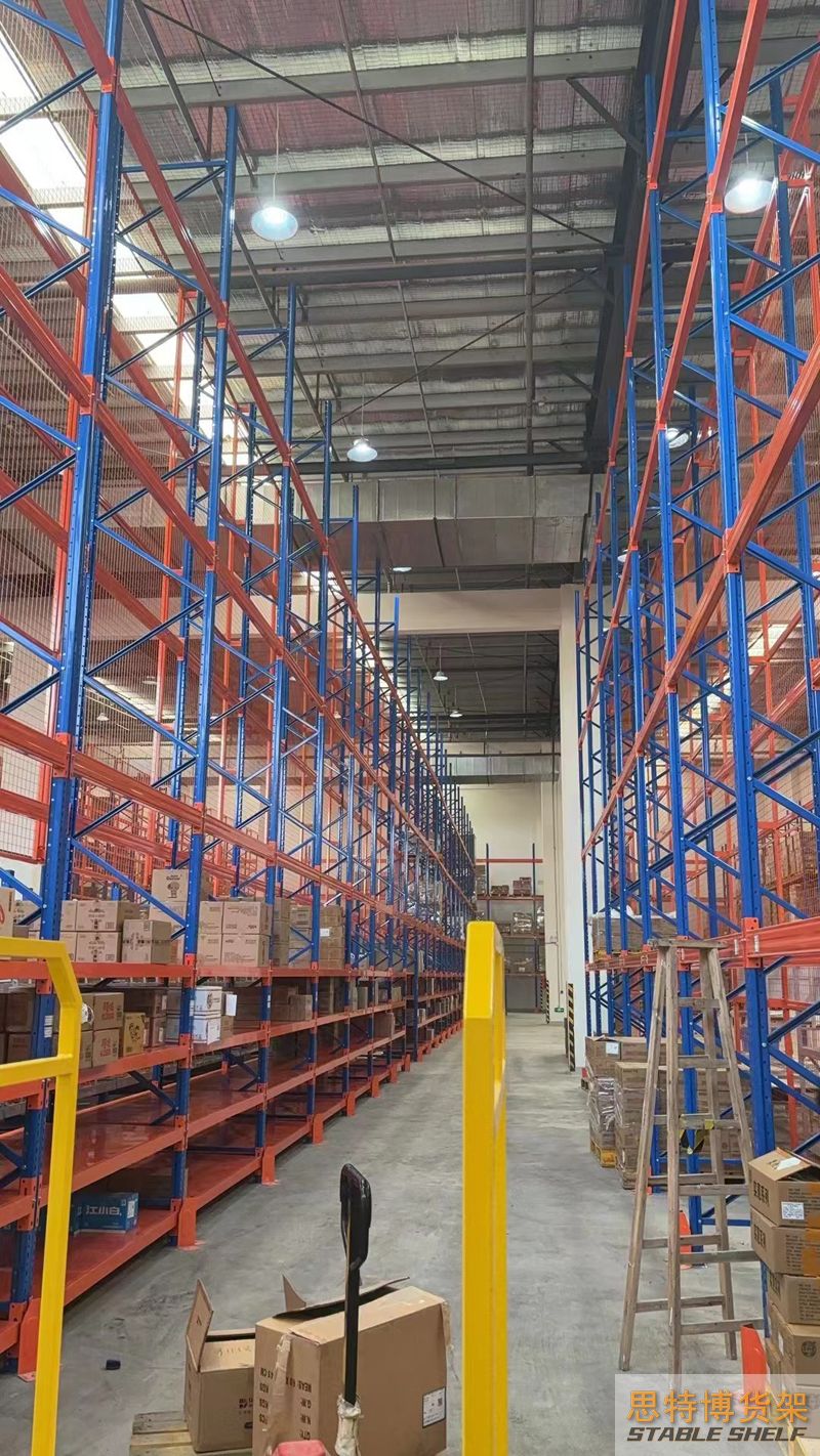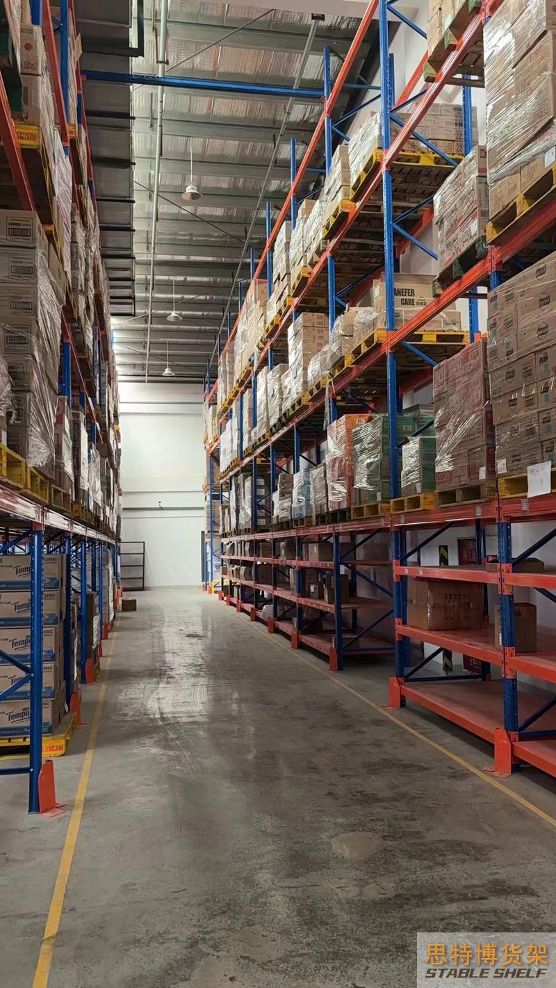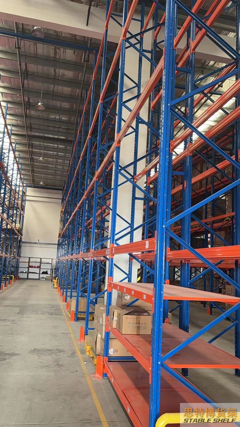 重型貨架是最常用的一種貨架,它具有良好的提取效率。固定架的儲存密度低,儲存的物品較重,必須配合托盤和叉車使用,所以又稱托盤貨架。在使用重型貨架時,必須考慮托盤和貨物的尺寸、重量和堆疊層數(shù),以確定合適的支柱和橫梁尺寸。此外,為提高空間利用率,可減小通道寬度,采用專用堆垛機的軌道形式,即窄車道式貨架,將存儲空間垂直放置。