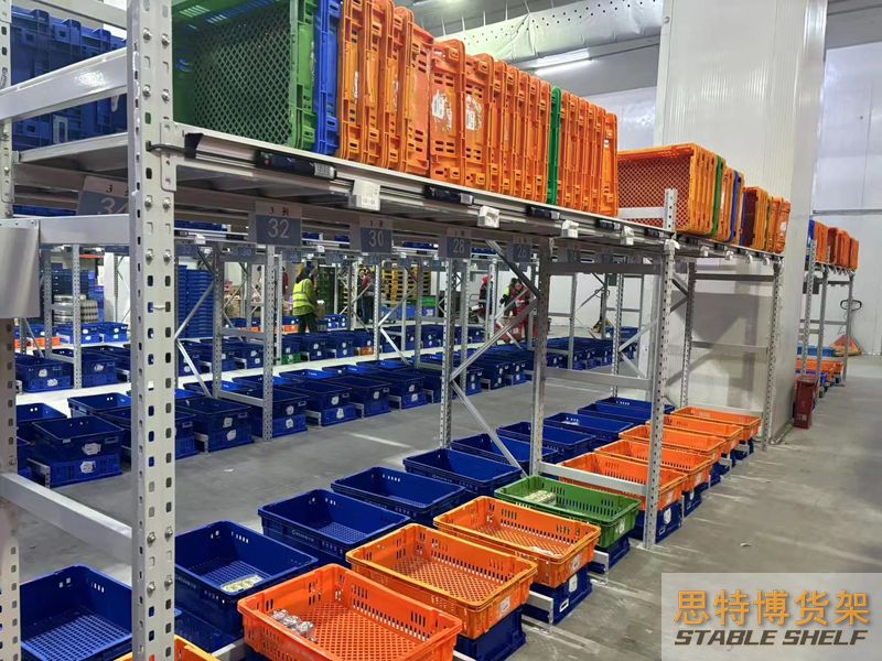 重型貨架是最常用的一種貨架,它具有良好的提取效率。固定架的儲存密度低,儲存的物品較重,必須配合托盤和叉車使用,所以又稱托盤貨架。在使用重型貨架時,必須考慮托盤和貨物的尺寸、重量和堆疊層數,以確定合適的支柱和橫梁尺寸。此外,為提高空間利用率,可減小通道寬度,采用專用堆垛機的軌道形式,即窄車道式貨架,將存儲空間垂直放置。