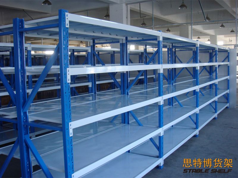 屬于倉(cāng)儲(chǔ)貨架的一種,擱板貨架類(lèi)型。是按貨架的承載量來(lái)區(qū)分與命名的。按照這一劃分原則中型貨架介于輕型貨架和重型貨架之間,故名中型貨架。通常貨架承載150kg-800kg/層(貨架載荷絕大多數(shù)是以層為單位的承載量計(jì)算)。